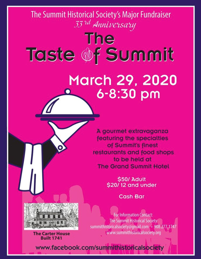 On March 29th, the Summit Historical Society will host a “Taste of Summit.” The event will take place from 6:30 to 8:30 p.m. at The Grand Summit Hotel, located at 570 Springfield Avenue