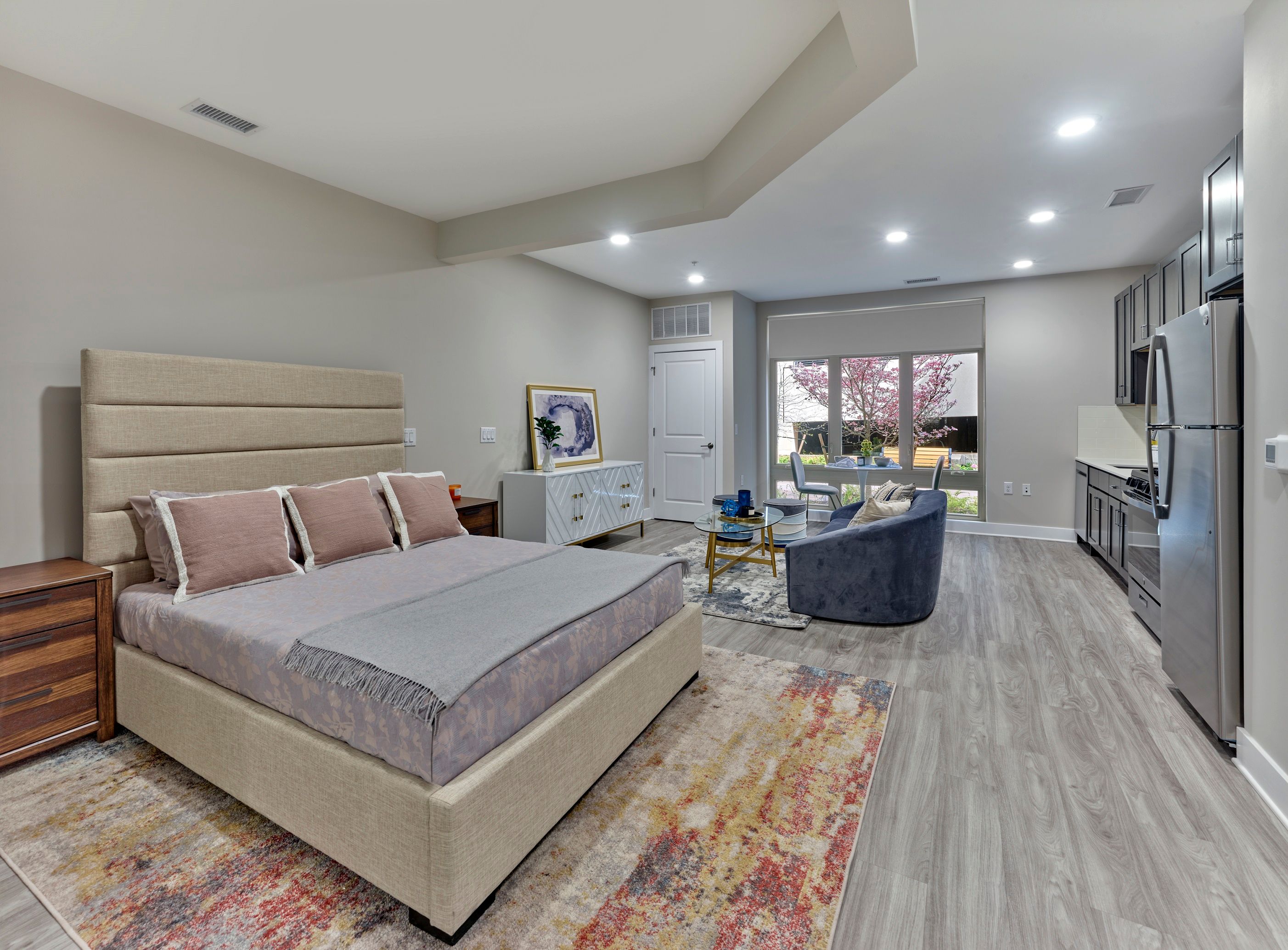 The debut of Crossings is a game changer for Raritan, a quiet suburban town with excellent public schools that borders downtown Somerville, along NJ TRANSIT’s Raritan Valley line. It introduces a new caliber of rental residences with features such as 9’ ceilings, luxury plank flooring, and upscale kitchens with quartz counters, modern espresso cabinets, a full-height subway tile backsplash, stainless-steel appliances and a gas range.