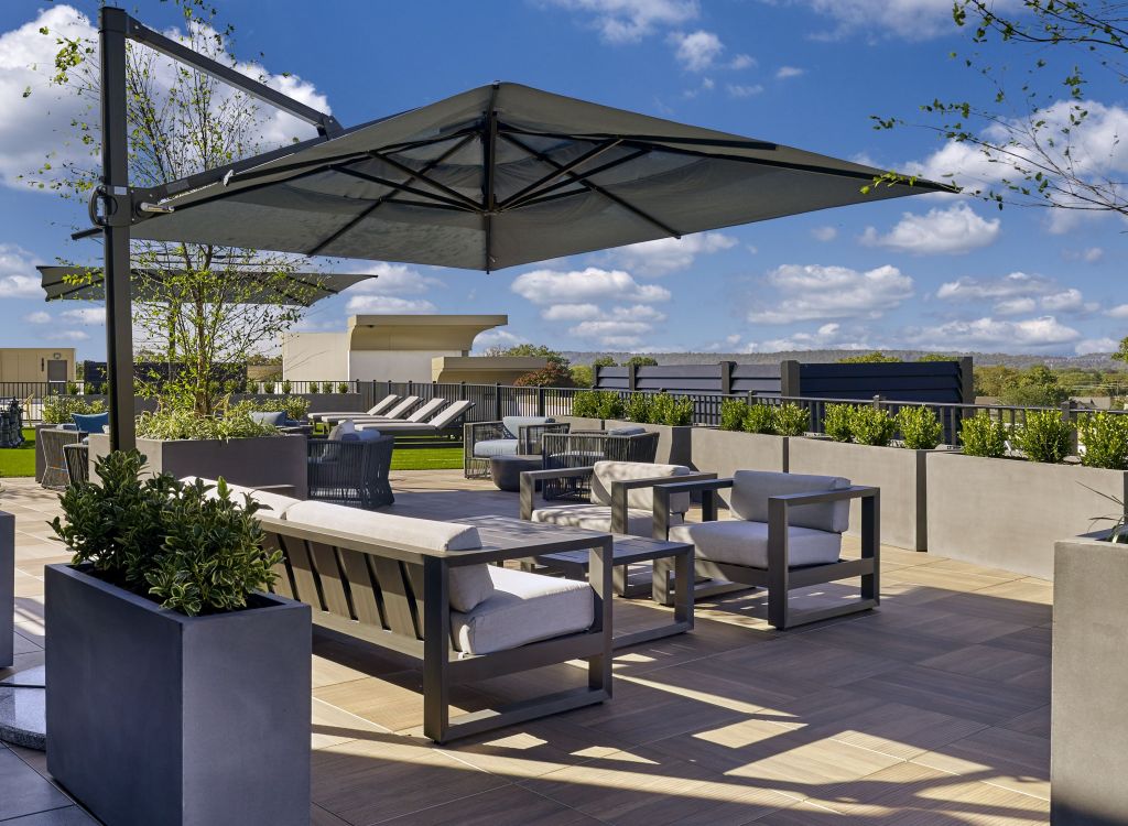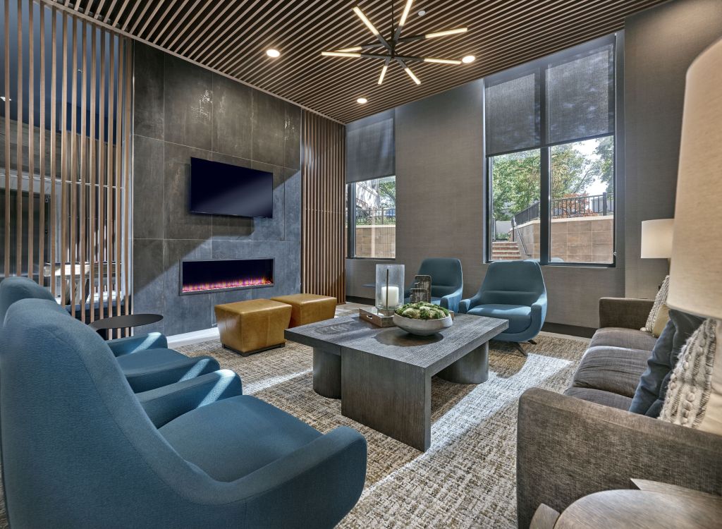 The professionally decorated spaces have been thoughtfully planned to provide the type of social and recreational environment today’s contemporary renter seeks. Found inside the luxury five-story building are a clubroom with a fireplace, kitchen, and seating area; resident lounge with billiards, a state-of-the-art fitness center, children’s playroom, and lobby coffee room/café. Coveted outdoor social spaces are highlighted by a stunning rooftop deck featuring stainless steel grills, dining areas, sundeck, lounge areas, bar with island seating and flat screen TVs.